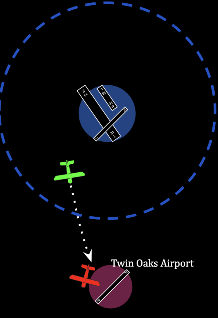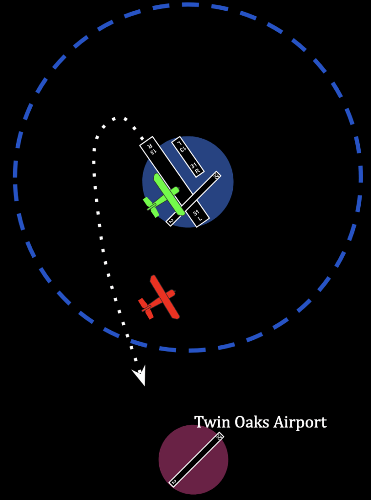“Cessna 448, thanks for your, uh, transponder. It did show back up now. Altitude indicates 1,000 and one aircraft appears to be in the pattern at twin oaks. 1,200 indicated. Cessna. Frequency change approved. Good day!”