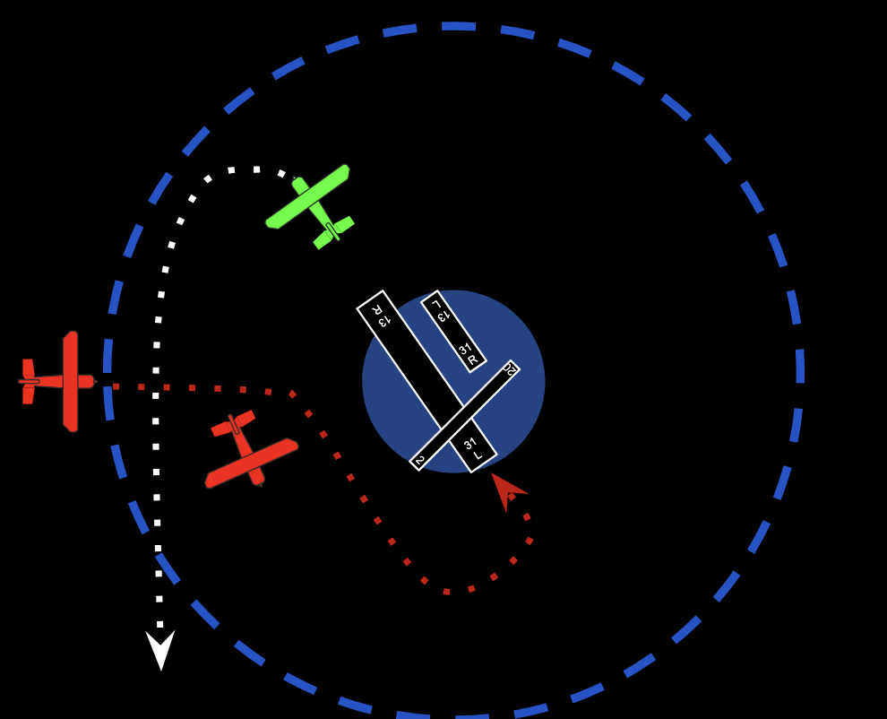 Pilot: “Change 13R. 4 mile, right base 13R.”
