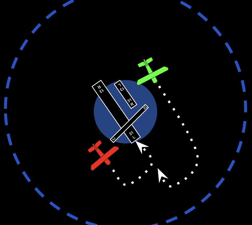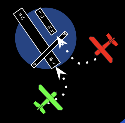 Pilot: “Change to 31L. 31L cleared to land, number 2, negative contact.”